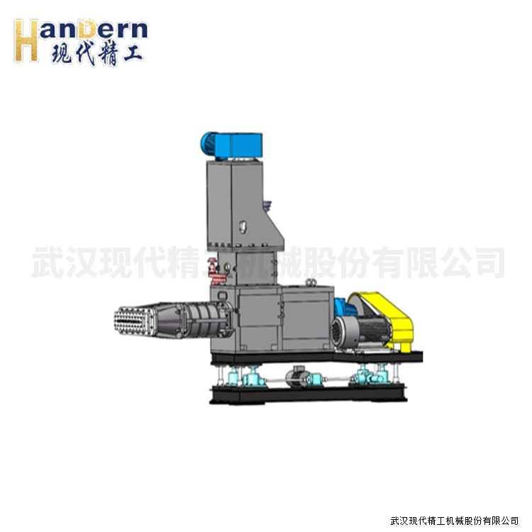 攪拌混煉系統(tǒng):它由高速混合攪拌機和螺桿擠出捏合機組成。高速混合攪拌機靠安裝在攪拌筒內(nèi)帶動葉片的行星軸不斷旋轉(zhuǎn),將物料進行強制擠壓,翻轉(zhuǎn)等復(fù)合運動,從而實現(xiàn)強制攪拌,而使物料混合均勻。水泥、粉煤灰、纖維經(jīng)高速攪拌機混合均勻后,通過卸料口進入捏合機,在捏合機內(nèi)經(jīng)過充分混煉后,由底部螺桿擠出,通過皮帶輸送機輸送至擠出成型系統(tǒng)。