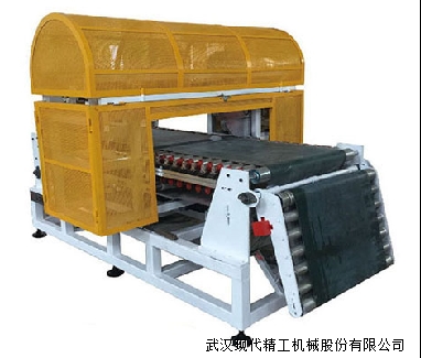 同步切割系統(tǒng):它是由同步切割機和相關(guān)控制系統(tǒng)組成,它將擠出機擠出成型的濕坯板材按照所需長度切割成一定長度的濕坯板材,切割過程中,鋸片沿板材輸送方向,以板材輸送速度同步移動,從而保證板材端面的平直。