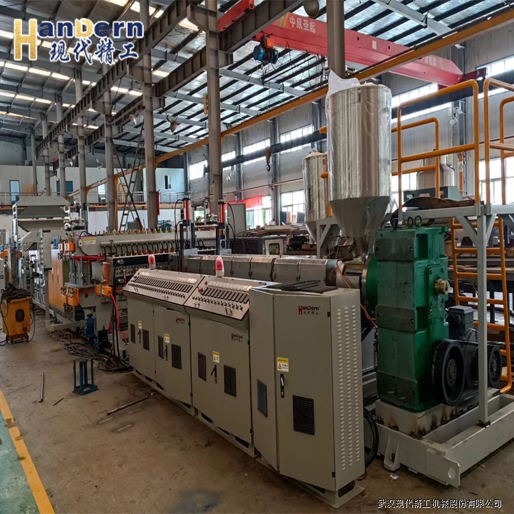 中空格子板生產(chǎn)線的組成結(jié)構(gòu)包括擠出機、模具、真空定型臺、冷卻系統(tǒng)、牽引、熱處理烘道、剪切機等。其中最核心的組件之一就是它的擠出機,目前市面上有單螺桿擠出機和雙螺桿擠出機,其中雙螺桿擠出機深受客戶的青睞。